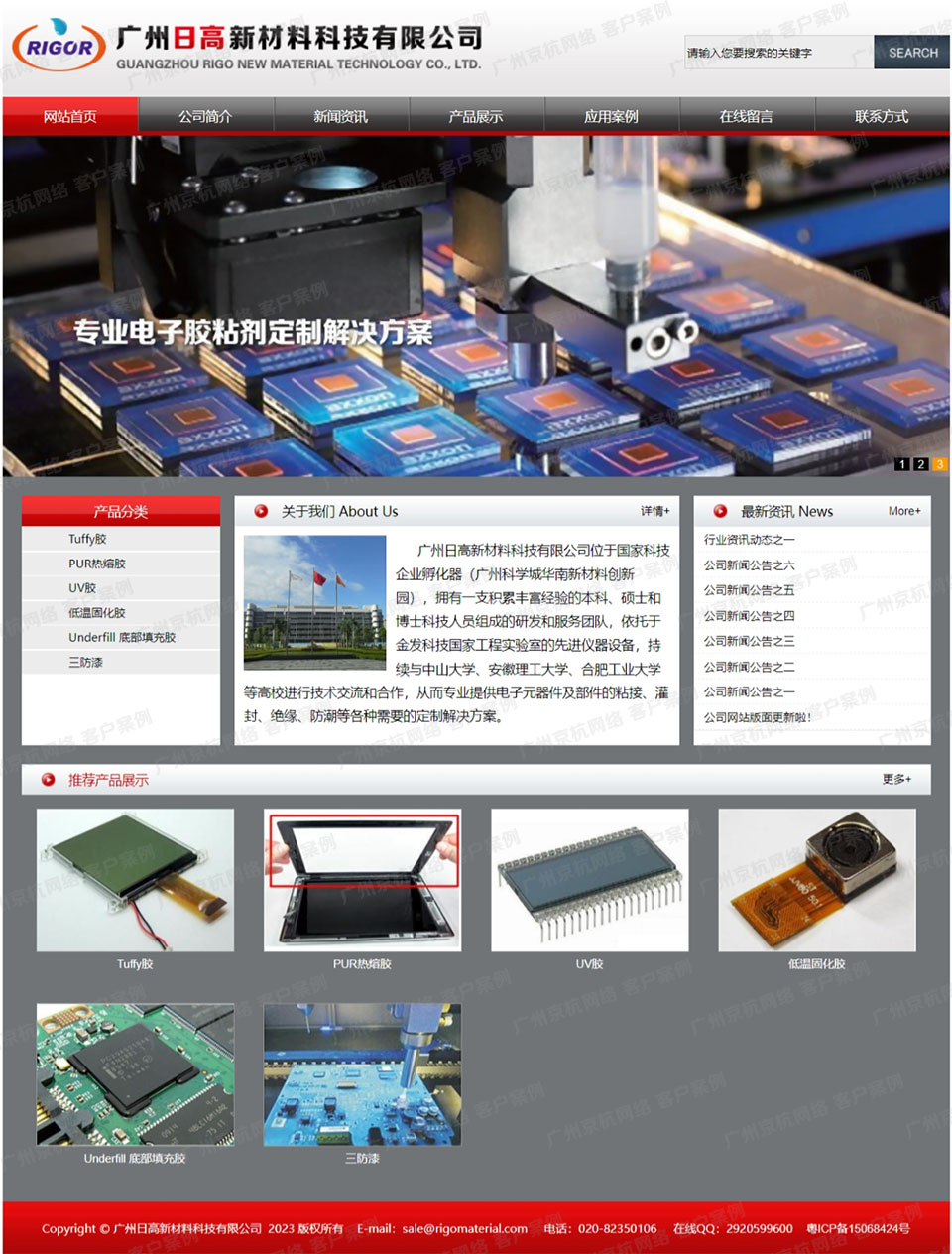 目前主要提供PUR热熔胶、Tuffy胶、UV胶、单组份环氧胶等系列产品,应用于摄像头模组、手机、LED组装、电子元器件、电脑、触摸屏、摩托车、汽车、太阳能等行业。